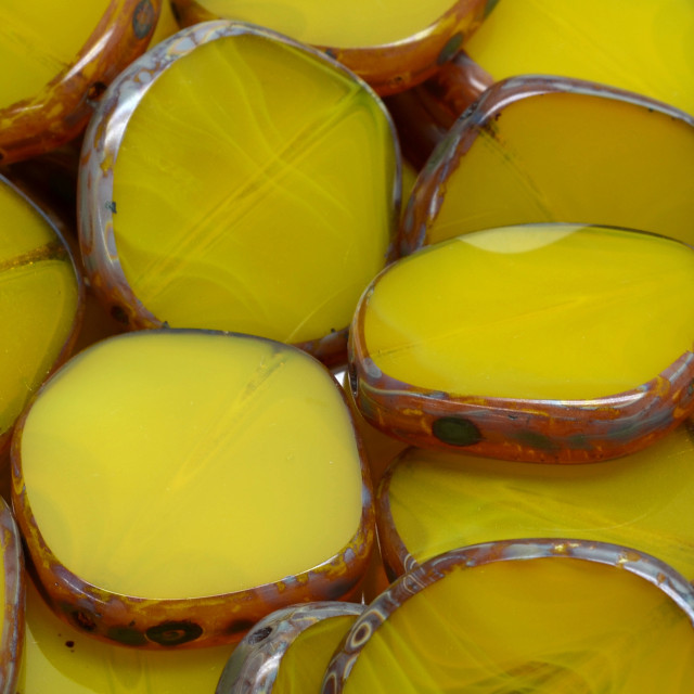 Shamrock Clover Oval Pressed Czech Glass Beads 10x8mm 12 Pcs - Clear Amber & Green